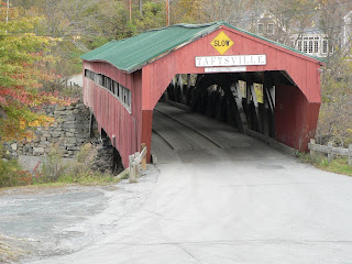 Besides its beautiful hills Vermont is decorated in white church spires. Tiny white painted wooden churches in every village. Quaint and gorgeous. Then, dotted on little side routes, over tiny gushing streams, are dozens of old rustic covered bridges built in ages past to protect the wooden supports from snow and water damage -- labelled freshly with the bridge builder's name. Americans honour them still.